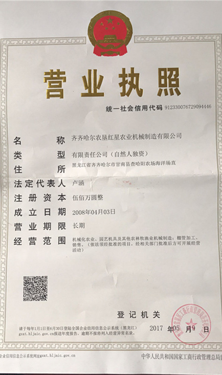 齊齊哈爾農(nóng)墾紅星農(nóng)業(yè)機(jī)械制造有限公司
